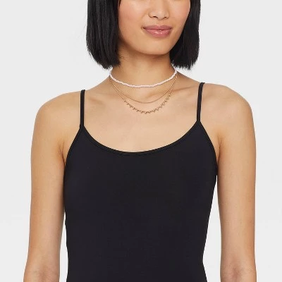 The Pink Seedbead and Station Necklace from Universal Thread™ makes a fashionable piece in your jewelry collection. This 16-inch multi-chain necklace features 2 gold finish station chains and a pink seedbead chain that adds layered interest to your whole look. It features a lobster-claw clasp closure with a three-inch extender chain to fit nicely around your neck. Pair with a range of casual ensembles or dresses to enhance your dressing style.