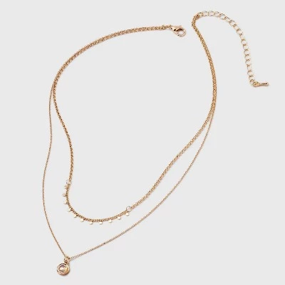 Present a precious gift to a loved one with the Semi-Precious Opalite with Dainty Chain Necklace from Universal Thread™. This gold-tone necklace features two layers of dainty chains with the longer one adorned with opalite stones for an amazing look. Plus, this chain necklace offers a comfortable, secure fit with the lobster claw clasp closure and an extender chain.