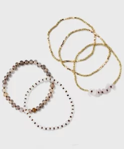 Mixed Semi-Precious Black Howlite Cylinder Beaded Bracelet Set 5pc – Universal Thread™ Gold/Black