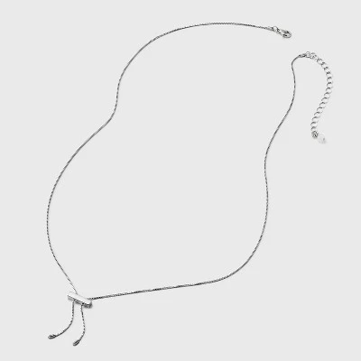 Add the perfect finishing touch to your look with this Slider Bar Bolo Tie Necklace from Universal Thread™. Featuring a modern bar pendant that slips on a lovely box chain for a range of styling possibilities, this bolo tie necklace is a must-have addition in your jewelry collection. It closes with a lobster-claw clasp at the back, where an extra piece of chain makes the length fully adjustable.