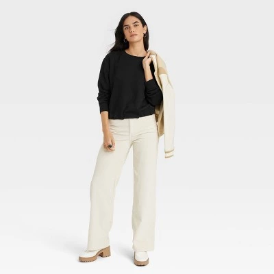 - Crewneck and long sleeves with ribbed edges