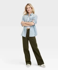 Add a classic staple to your outerwear wardrobe with this Denim Trench Coat from Universal Thread™. Made of midweight cotton-rich fabric, this light-wash long coat hits below the knee and features a back vent for easy movement and layering. The long-sleeve trench coat is designed with a notched collar, double-breasted front with buttons, and a matching sash-tie belt that gives you the option of wearing the coat open or closed. Pockets on the sides complete the design with functional flair.