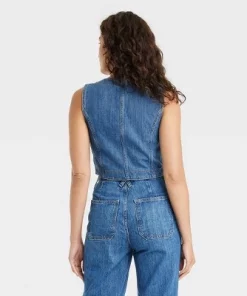 This Denim Vest from Universal Thread™ makes a versatile addition to your off-duty wardrobe. Fashioned in a regular fit that hits just above the waist, this medium-wash sleeveless vest features a pleated back, patch flap pocket and button-down front for functional flair. The breathable cotton fabric keeps you in absolute comfort throughout the day. Wear it with high-waist pants, a skirt and more for a variety of ensembles.
