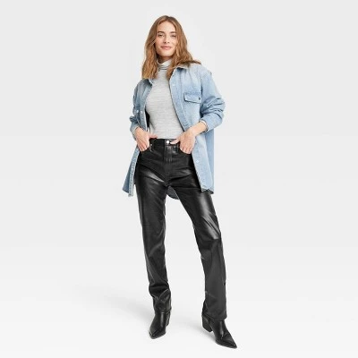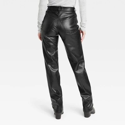 Channel some retro chic vibes with these High-Rise Faux-Leather 90’s Vintage Straight Jeans from Universal Thread™. These vintage jeans are made of black faux leather for a timeless look that captures the essence of the nineties. They feature a classic five-pocket design and a belt-loop waistband with a fly button and zipper closure for functional flair, plus a high-rise, straight-leg silhouette for a flattering look.