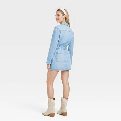 This Long-Sleeve Denim Shirtdress from Universal Thread™ is perfect for running errands, hanging out with friends, or just having a fun day out. This light-wash mini dress is made from lightweight cotton-rich fabric for all-day comfort. It sports a collared neckline with a half-length zippered front, long sleeves, a cinched waist with elastic shirring, and destroyed-finish hems. Roomy patch pockets on the front and back complete the design with functional flair. Dress it up with your favorite accessories and shoes, or keep it effortlessly cool with sneakers.