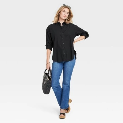 Elevate your dressed-up or casual looks with this Long-Sleeve Oversized Button-Down Shirt from Universal Thread™. Crafted from lightweight cotton with a flowy drape and an oversized fit, this solid-color shirt pairs beautifully with a range of bottoms. The collared neckline with button-down placket helps create an elegant design, while the cuffed long sleeves and curved hemline lend a stylish finishing touch. Button it all the way up and wear it tucked or untucked with your jeans or shorts, or wear it unbuttoned over a solid tee to dress up your everyday wear.