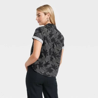 Keep it casually chic in this Short-Sleeve Collared Button-Down Shirt from Universal Thread™. The canvas shirt is made of a lightweight linen blend with a dressy notched collar, full button placket and a curved mid-waist length with side vents to elevate your comfort and style game. The short sleeves have turned-up cuffs and the front yoke seam is aligned with roomy chest patch pockets to put a laid-back spin on the chic silhouette, making the regular-fit shirt a versatile addition to your wardrobe.
